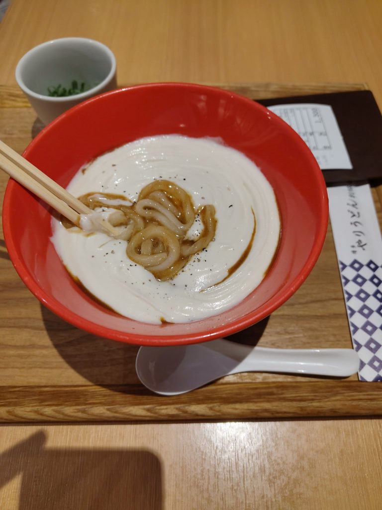 Weißes Curry Udon, „Shiroka“, das weiße sind wohl gestampfte Kartoffeln, darunter verbirgt sich das Curry. Das bekommt man wirklich nicht überall und war auch sehr lecker! Damit habe ich meine Essens-Ziele in Fukuoka alle erfüllt! Die leckeren Ramen werde ich vermissen.