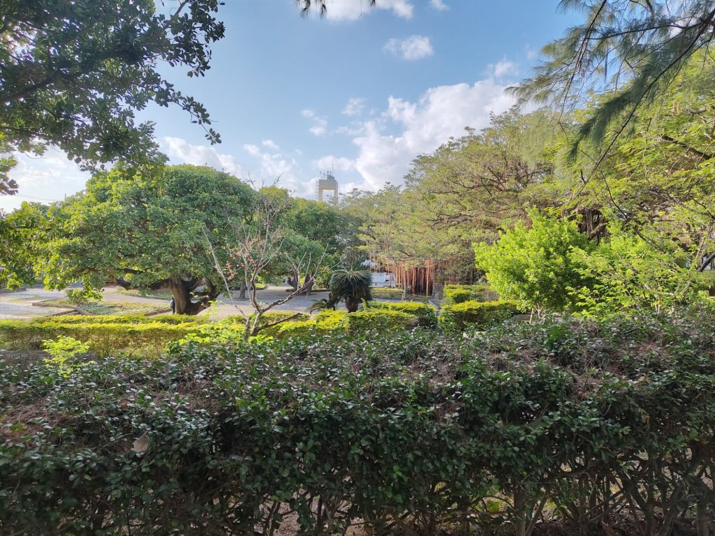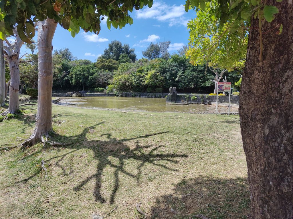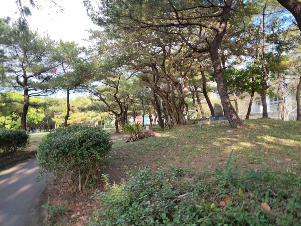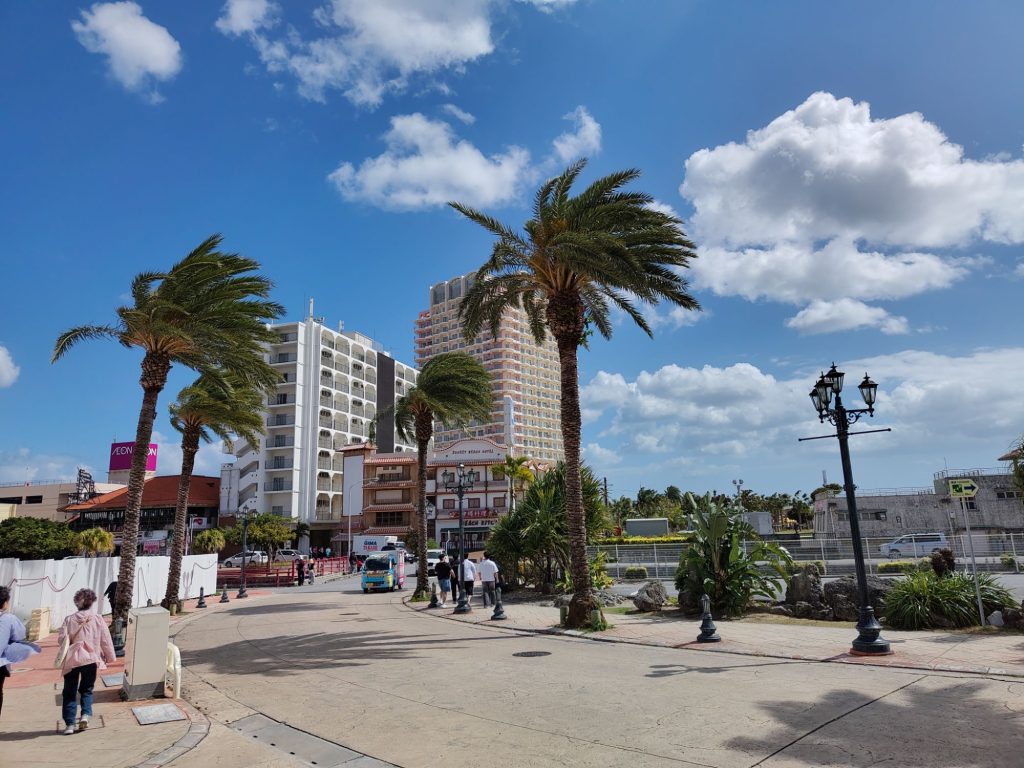 In Okinawa angekommen, war die Sonne hell an Strahlen. Was ein Unterschied zu letzter Woche! Ich bin dann ins Hotel gefahren, der Fußweg von der Bushaltestelle führte über einen schönen Park.