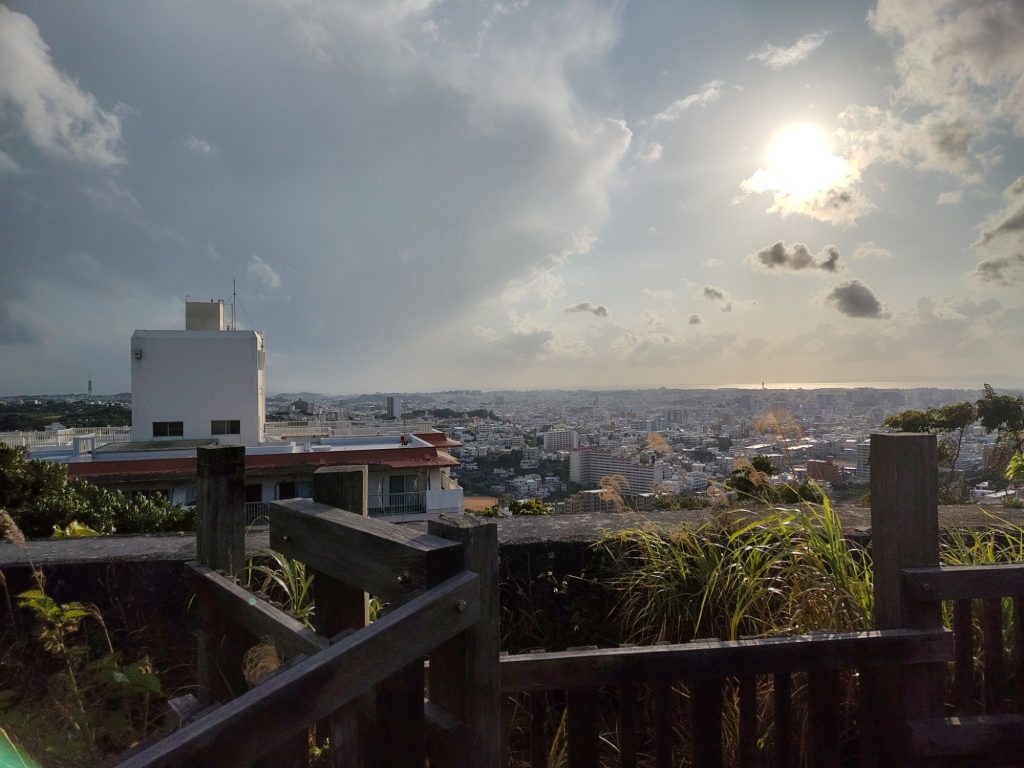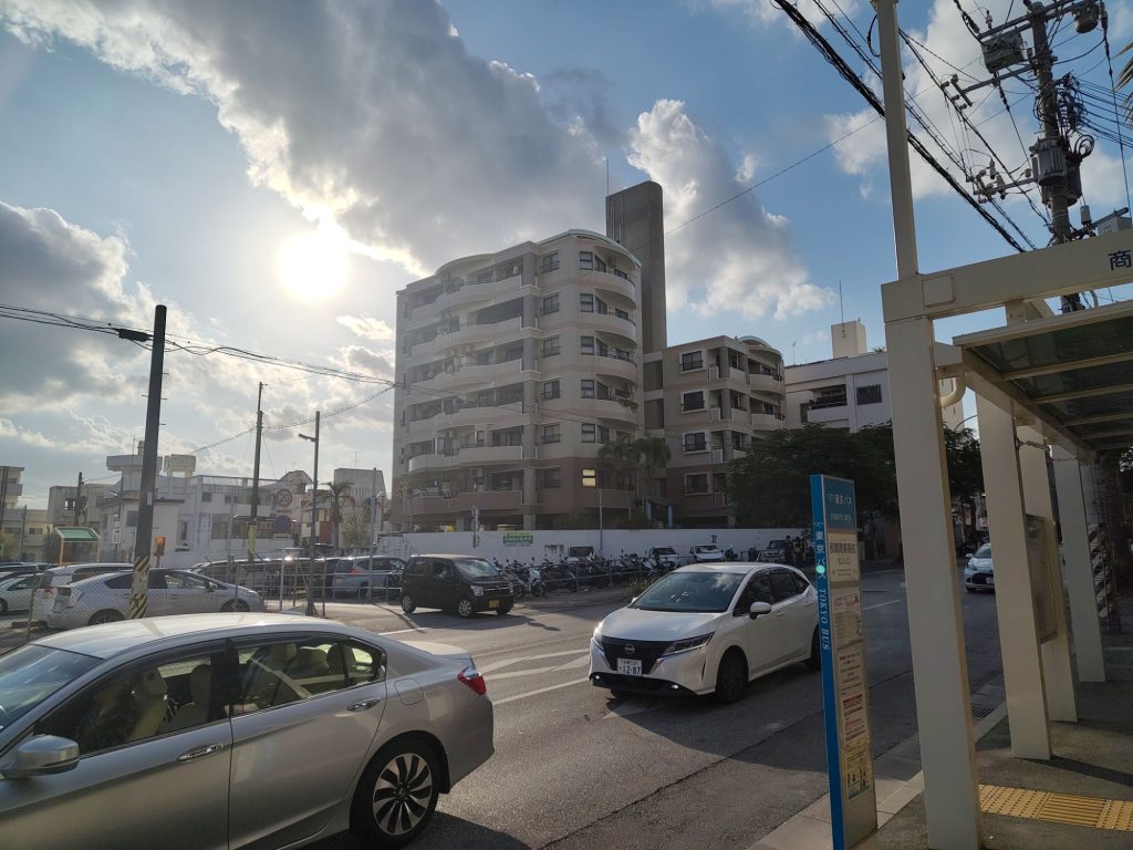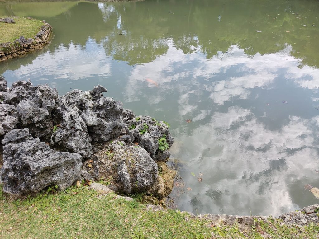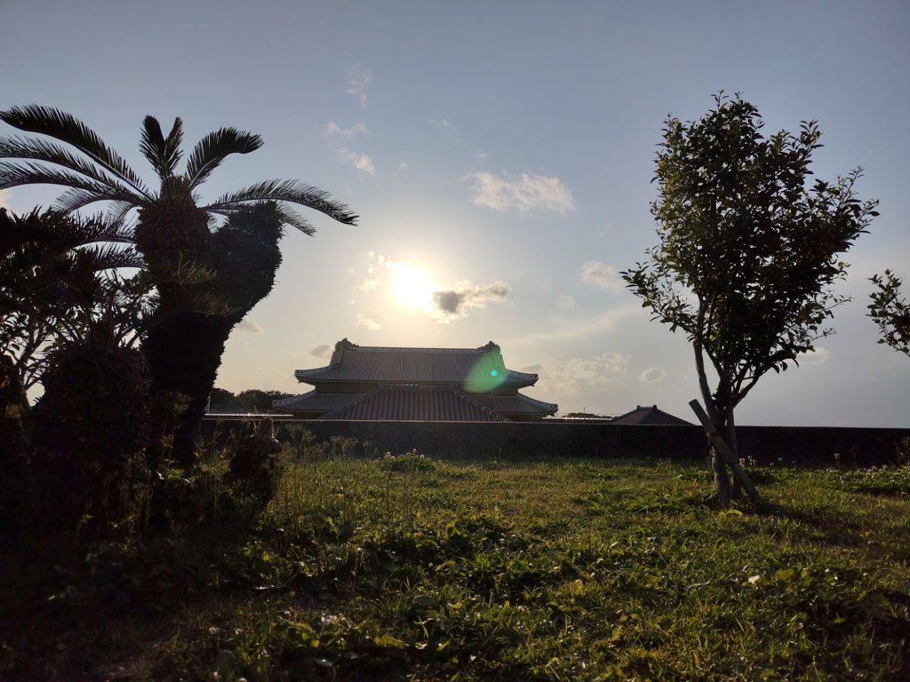 In Okinawa angekommen, war die Sonne hell an Strahlen. Was ein Unterschied zu letzter Woche! Ich bin dann ins Hotel gefahren, der Fußweg von der Bushaltestelle führte über einen schönen Park.