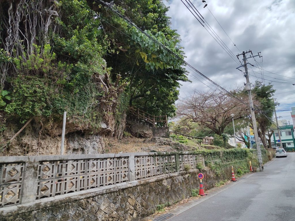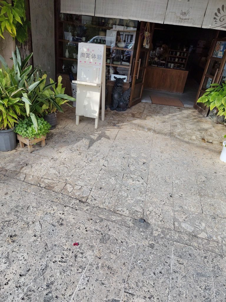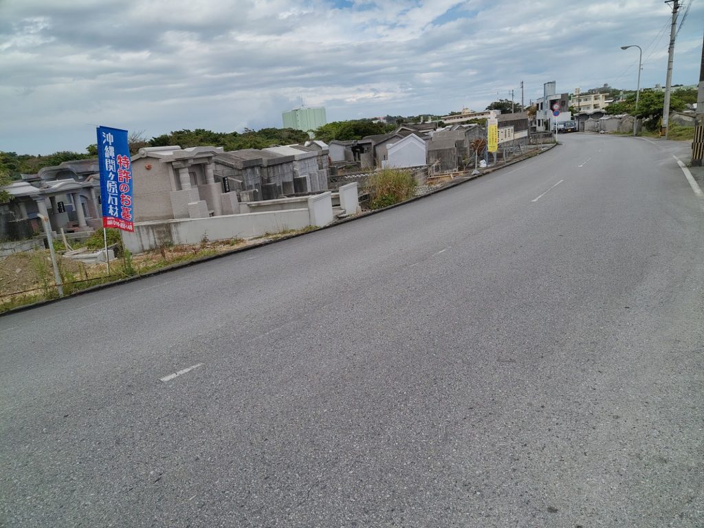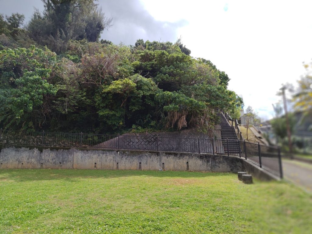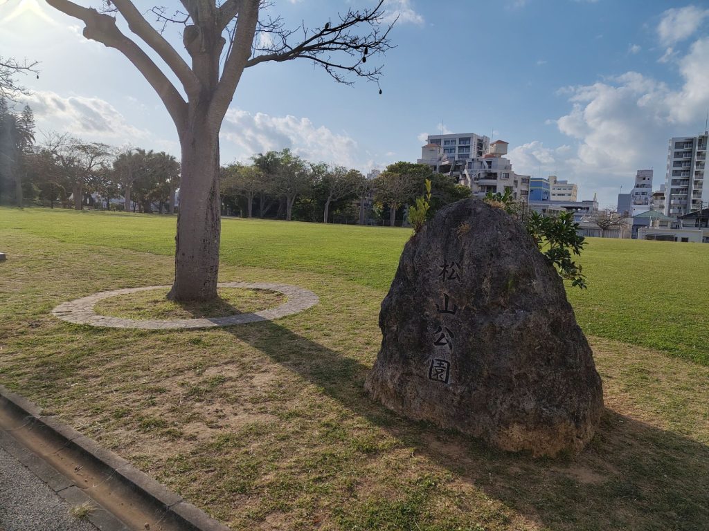 Auf dem Weg bin ich aus Versehen durch eine Straße gelaufen, die auch auf meiner Liste stand, die Tsuboya Yachimun Street, lauter Keramik-Läden. War ganz nett, aber hat mich nicht so sehr beeindruckt. Dahinter noch ein Park. Vor dem Garten war bei Google Maps eine riesige Grünflache, die sich als riesiger Friedhof herausstellte.