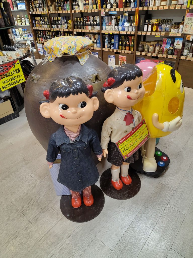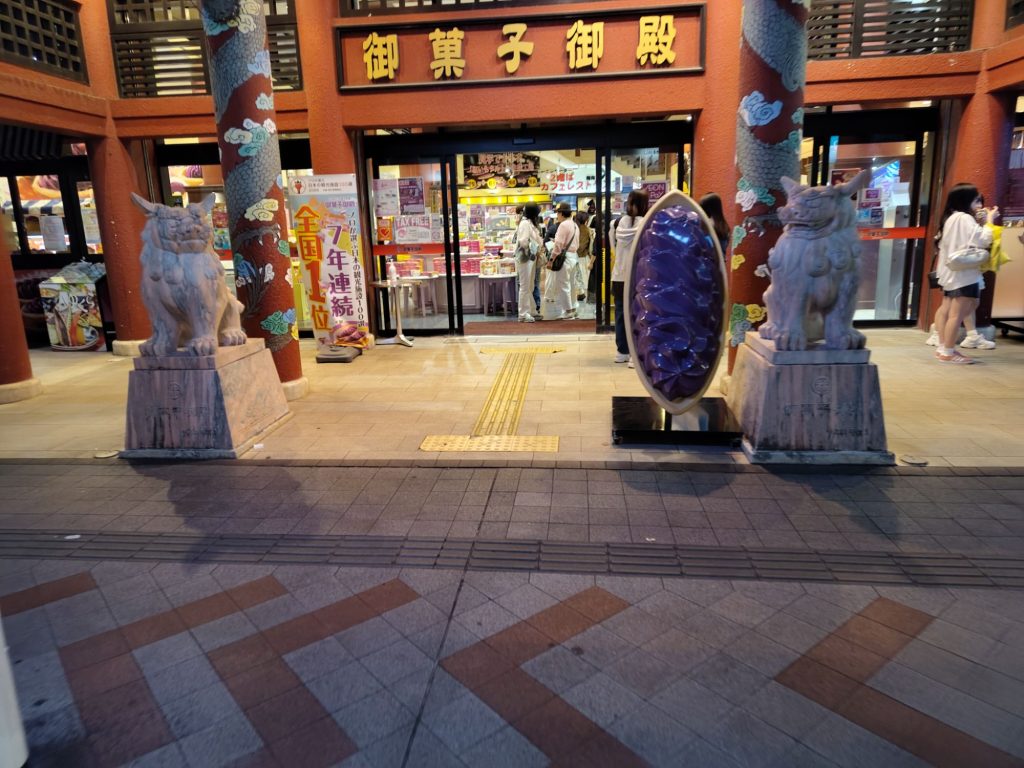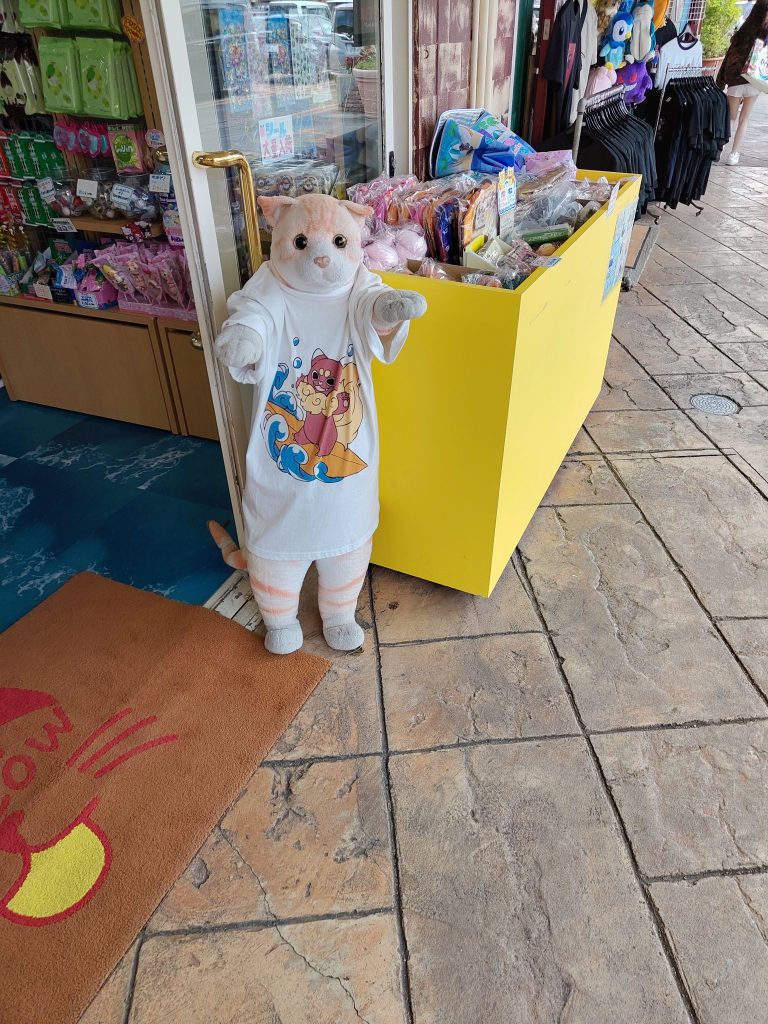 Katzen laufen hier einige rumSo macht man Werbung für Sonnencreme 😅Alkohol wird hier auch in rauen Mengen angebotenWar innen auch nur ein Souvenirladen + RestaurantTartboi – diese lilanen Torten sind hier sehr gefragt Gyoza