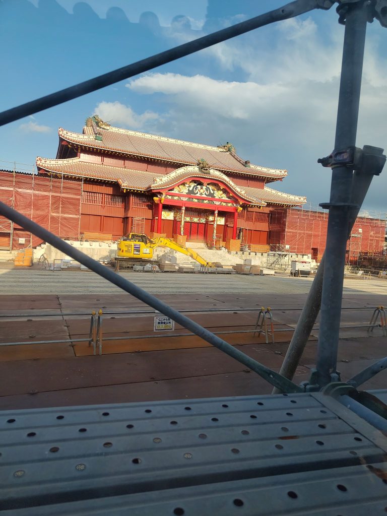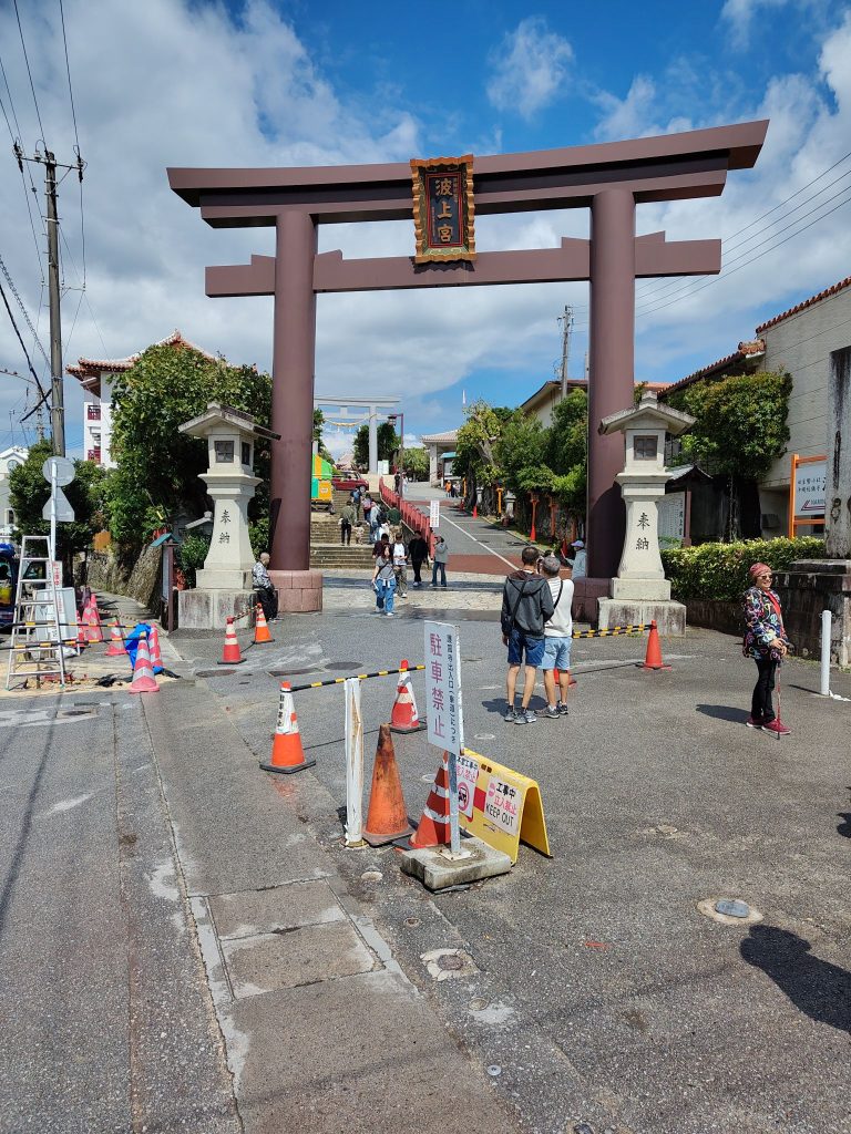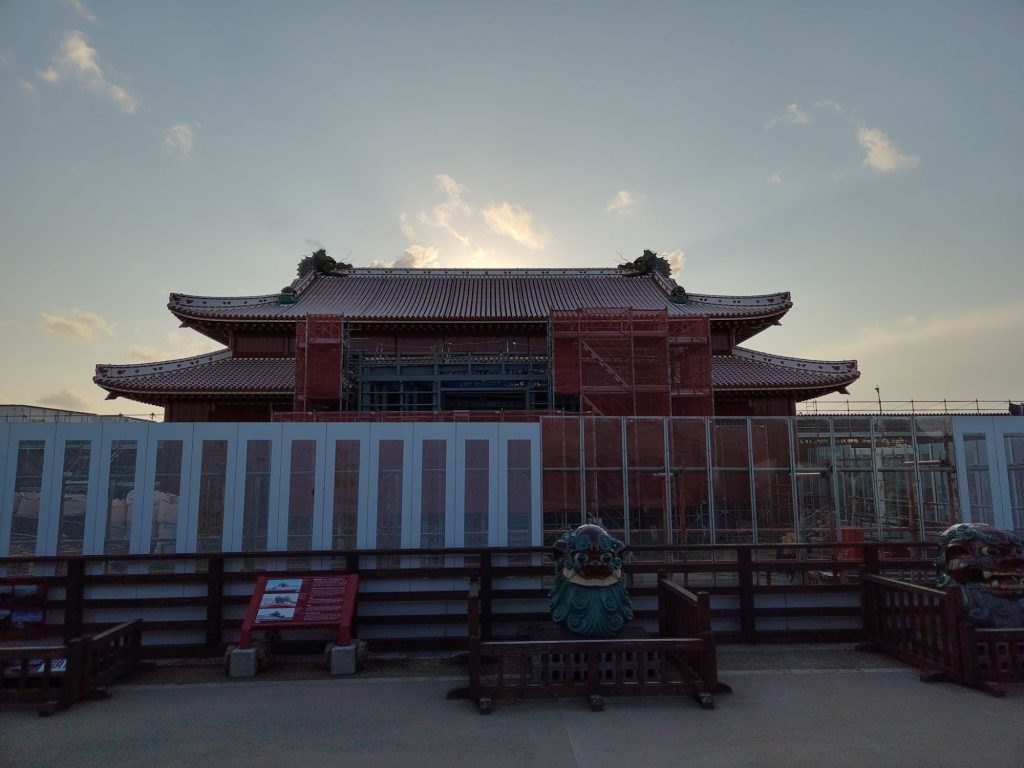 Danach weiter zu Schloss Shuri. Unterwegs noch einen kleinen Tempel angeschaut, lag auf dem Weg. Zudem durfte ich betrachten, wie ein Polizist jemanden durchsucht. In Japan eher ungewöhnlich. Der Weg zu Fuß sollte 30 Minuten gehen. Ich habe 90 gebraucht, weil ich aufgrund der Höhe mehrere Umwege gehen musste. Das war eine sehr anstrengenden Reise für mich.