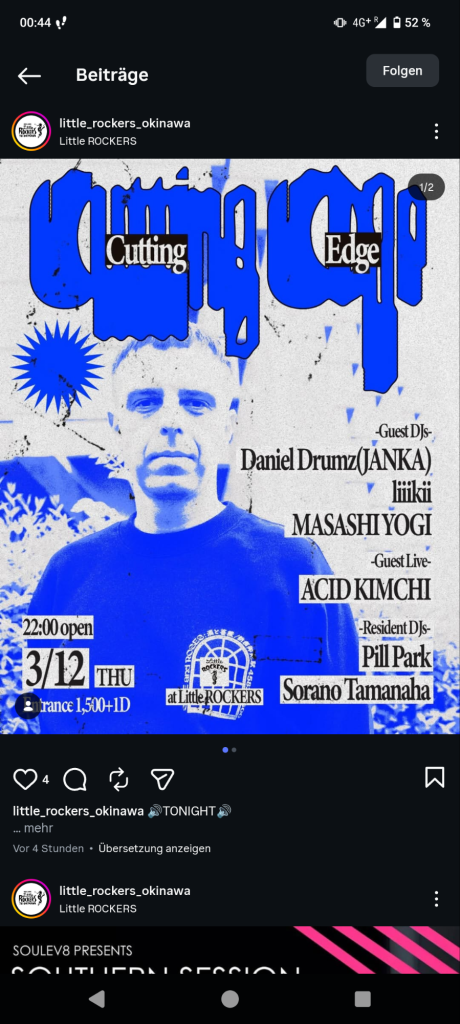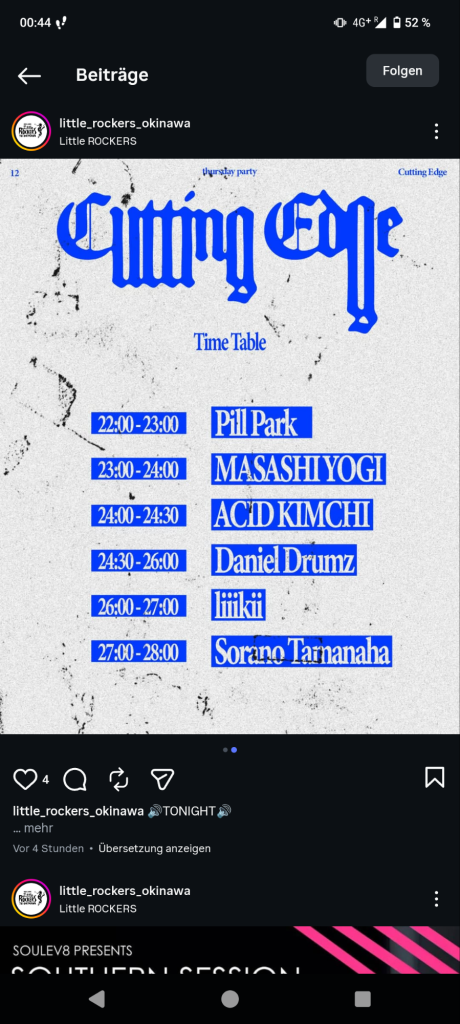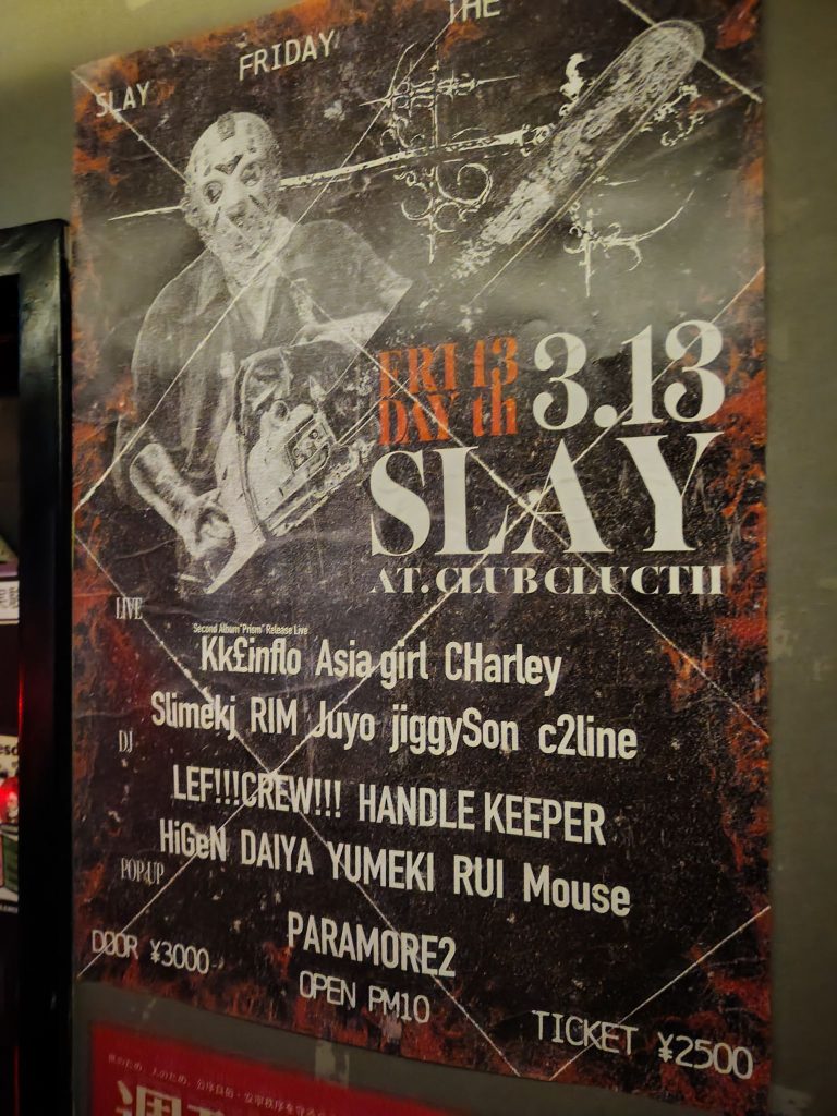 Der Schuppen war klein, kein Vergleich zur Precious Hall. Hier lassen vielleicht 20 Leute rein, der einzige Rückzugsort ist die Treppe im Freien. Dafür bin ich hier aber auch mit Leuten ins Gespräch gekommen. Wirkte sehr Underground mäßig, aber japanischer Techno ist schon sehr spannend. Recht psychedelisch und treibend. 👍