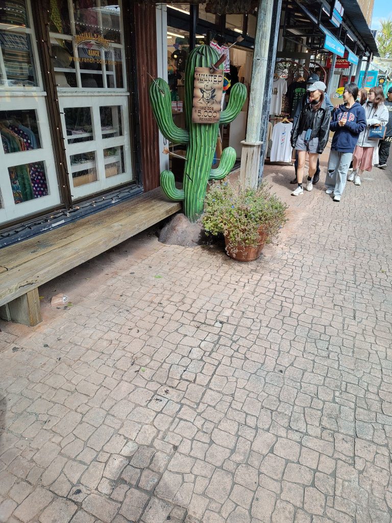 Da die Zeit langsam knapp wurde bin ich strammen Schrittes zum nächsten Ziel, das Zentrum der Stadt. Dort gab es einen Souvenirladen, der demnächst zumacht. Und oft passiert es mir, dass ich ein zwei Sachen am Ende wegen der Öffnungszeiten nicht sehen kann. Aber von Weg her hat es so am meisten Sinn ergeben. Leider war fast alles schon ausverkauft (sicher nicht von heute), selbst T-Shirts gab’s nur noch in Größe M. Und die japanischen Größen fallen eh was kleiner aus (aber hey, es passt mir Grade so).