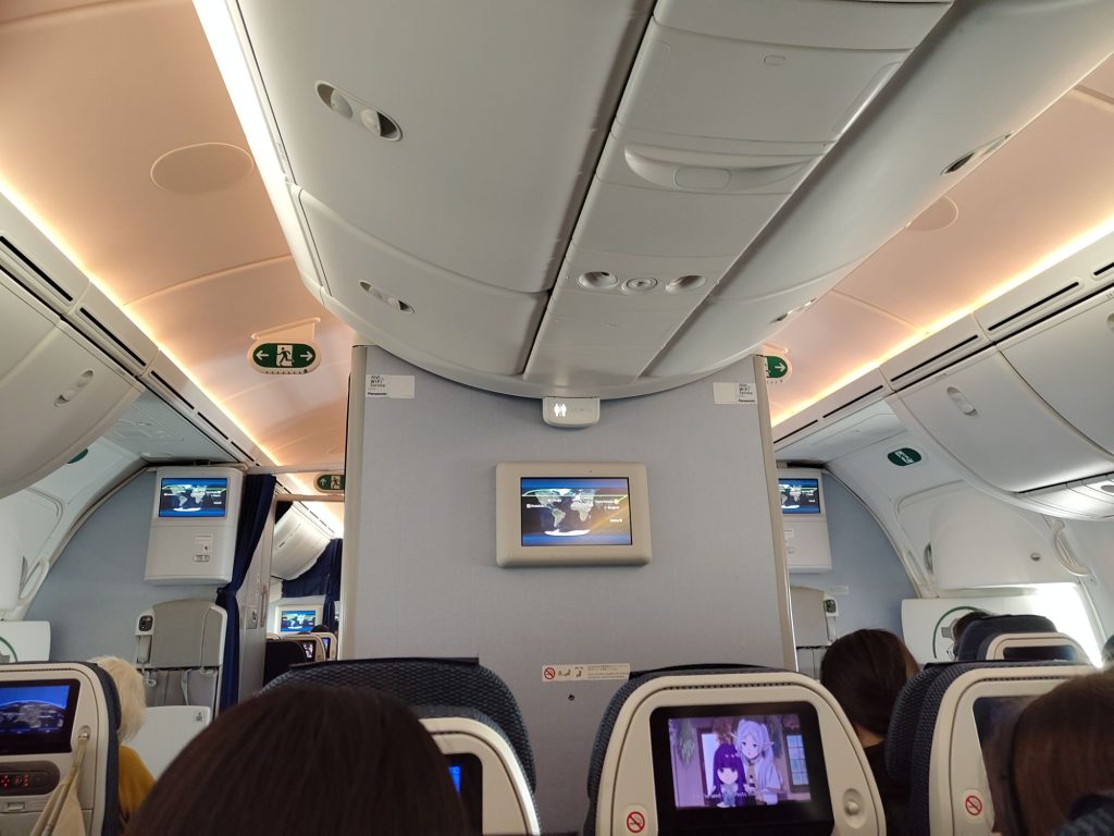 Die Reise war anstrengend, hinter uns neben mir waren zwei etwas kindlichere Wesen, die hinter hat dauernd ihren Kopf so auf den Tisch gelegt, dass mein Stuhl gewackelt hat, sehr nervig, und die neben mir war auch zappelig und hat mir dauernd ihre Haare gegen den Arm geklatscht. Sie zog nach dem halben Flug zum Glück auf einen anderen Platz, was hieß, dass ich niemand neben mir hatte und meine Beine ein bisschen ausstrecken konnte. 😀 Eine Zeit lang sind viele Kinder rumgelaufen und ein Typ in der gleichen Reihe quietschte dauernd mit seinem Fußteil. Dadurch, dass die Vorfreude fehlt und der Flug auch noch 2 Stunden länger ist, empfand ich diesen definitiv als anstrengender.