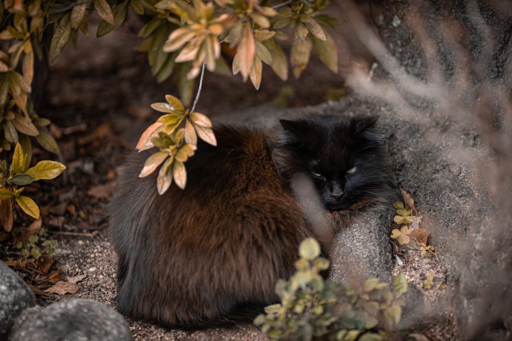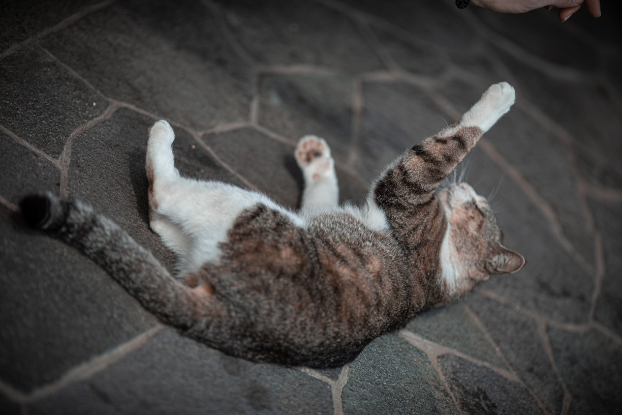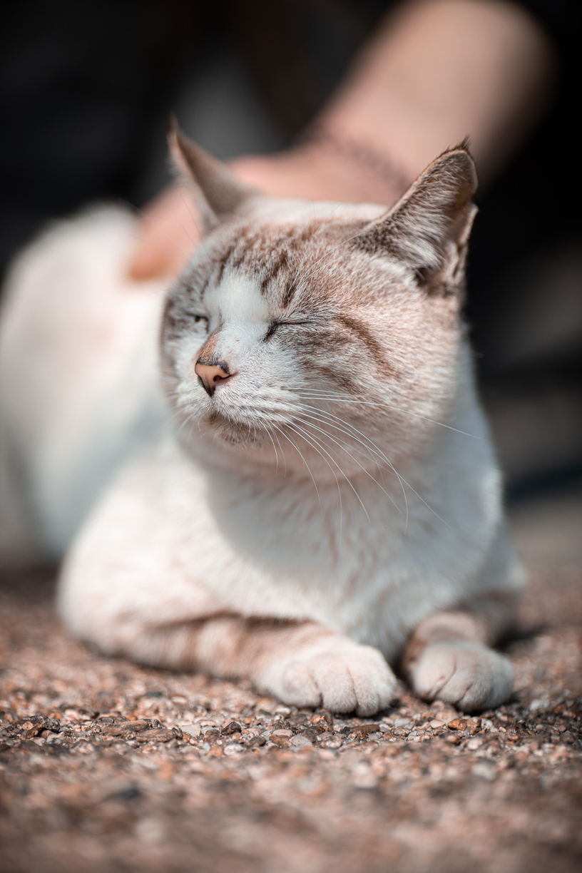 Ich finde das sehr cool, weil alles irgendwie einen Abenteuercharakter und seinen ganz eigenen, besonderen Charme hat. Am Anfang des Weges haben wir ein Schild entdeckt, welches mit ganz vielen Katzenfigürchen verziert war. Als wir ein Foto davon gemacht haben wurden wir auch schon von einer Stimme zum reinkommen gerufen. Als wir dann um die Ecke schauten haben wir gesehen, dass da ein kleiner Laden war der eher einem Wohnhaus ähnelte. Highlight war ein Streuner der aussah wie Garfield und die Eingangstür bewachte. Im Laden hat uns dann eine ganz liebe Japanerin begrüßt, die für japanische Verhältnisse wirklich sehr gutes Englisch sprach. Besagte Japanerin ist eine noch größere Katzenlady als ich und hätte absolutes Potenzial, meine beste Freundin zu werden. Spaß, aber Social Media haben wir zumindest ausgetauscht. Sie verkauft in ihrem Laden handgemachte Katzenfiguren, wovon ich mir auch eine kleine mitgenommen habe. Außerdem kümmert sie sich mehrmals am Tag um die Streuner, das ist auch der Grund wieso so viele zu ihr in den Laden kommen. Wir sind ihr später noch drei mal versehentlich begegnet! Schaut gerne mal bei ihr vorbei: www.instagram.com/michikomasuyama . Hinter ihrem Laden ging der Katzenwahnsinn dann auch schon richtig los, wir haben unzählbar viele Katzen getroffen die sich allesamt haben streicheln lassen. Ich muss sagen, ich hatte zuvor die Befürchtung, wir würden heute nur auf kranke und ausgehungerte Inzestkatzen treffen, wie es in den meisten Katzenorten in Japan der Fall ist. Kleiner Exkurs: In Japan ist es Trend sich in sogenannten Pet-Shops für extrem viel Geld Kitten zu kaufen, die dann meist nach einem Jahr wenn sie voll ausgewachsen und somit „nicht mehr süß“ sind unsterilisiert und unkastriert ausgesetzt werden. Und das geschieht meistens an Sammelplätzen. Das ist auch der Grund, wieso Japan unzählige Katzeninseln hat, wo hunderte Katzen leben die sich unkontrolliert vermehren. Doch hier, in Onomichi, konnte man dieses Leid nicht sehen. Die meisten Katzen waren recht dick, hatten glänzendes Fell und waren vital. Außerdem waren alle Mädels sterilisiert, was man an den sogenannten „Sakura-Öhrchen“ erkennt, also ein kleiner ausgestanzter Knick im Ohr. Menschen wie der Katzenlady aus dem Laden ist das auf jeden Fall zu verdanken.