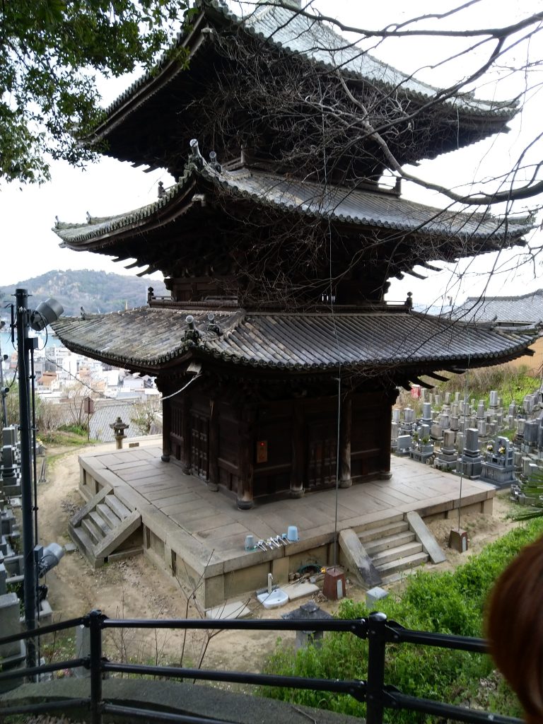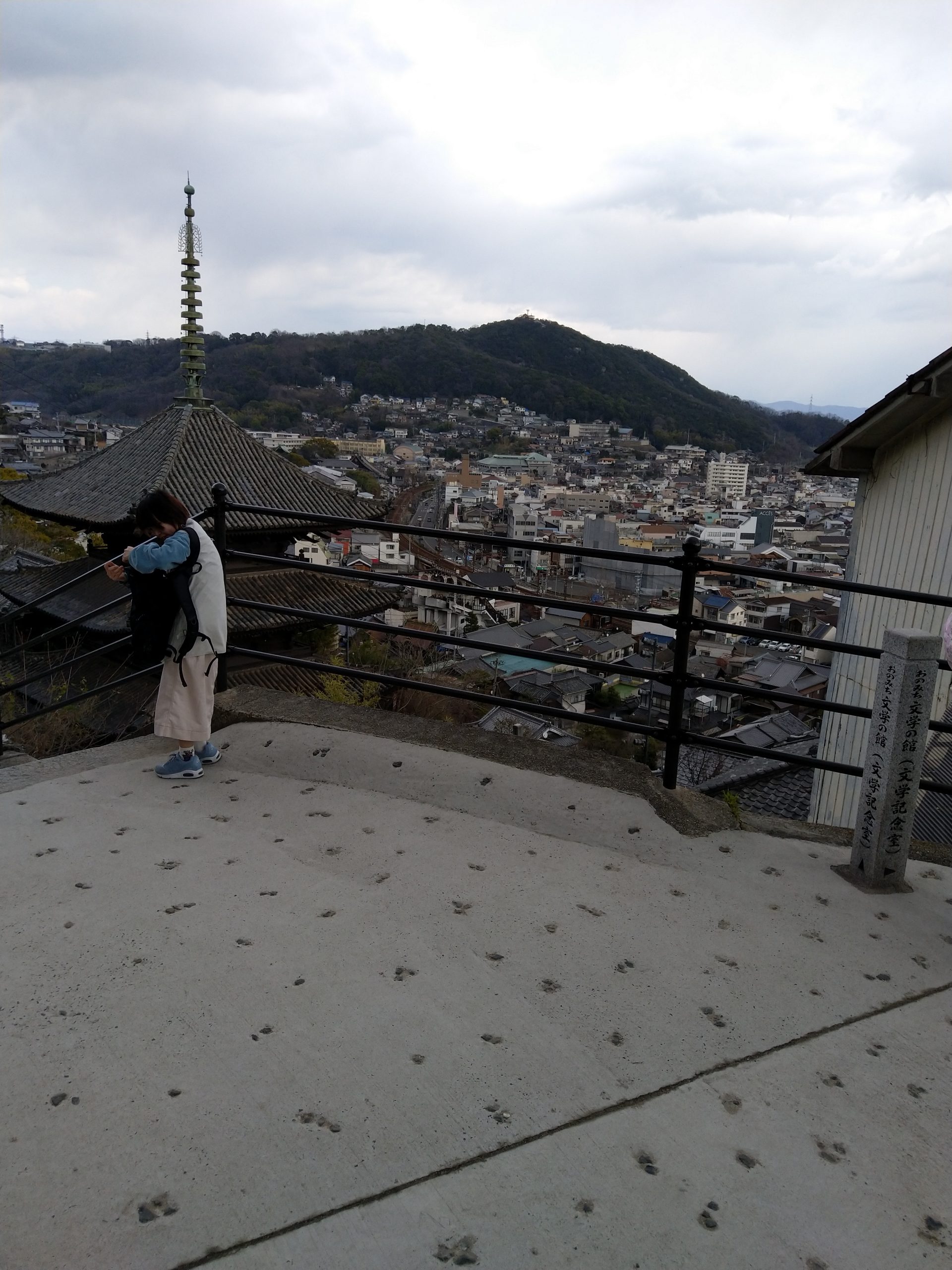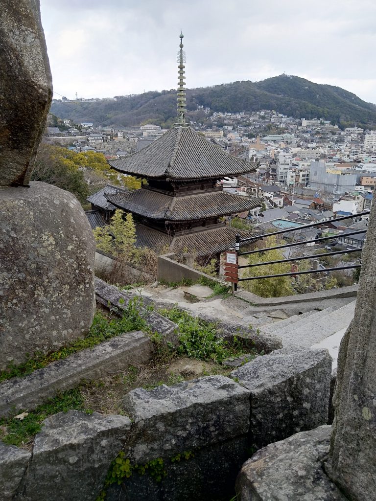 Diese liefen wir hoch, an einem Museum, Onomichi Literature Museum vorbei, welches aber uninteressant aussah und dann wieder an einer ganzen Menge Katzen. Während unser Weg bis dorthin kaum andere Menschen beinhaltete, fanden sich an diesem Weg recht viele Menschen. Wir wir aber feststellten führen an der Spitze des Berges an dieser Stelle aber auch Seilbahnen, was die Menschenmengen wahrscheinlich erklärt. Mit dem Ziel, noch einen Schrein zu sehen sind wir diese Treppen immer weiter hochgelaufen ohne zu merken, wie hoch wir gelaufen sind. Irgendwann als wir eine Pagode erreicht haben, wo auch wieder mehrere Katzen zu betrachten waren, merkte ich, das wir doch etwas zu hoch für meinen Geschmack waren. Der Anblick war zwar sicher wunderschön, aber nur bei dem offenen Blick über die Stadt fing sich mein Magen an zu drehen.