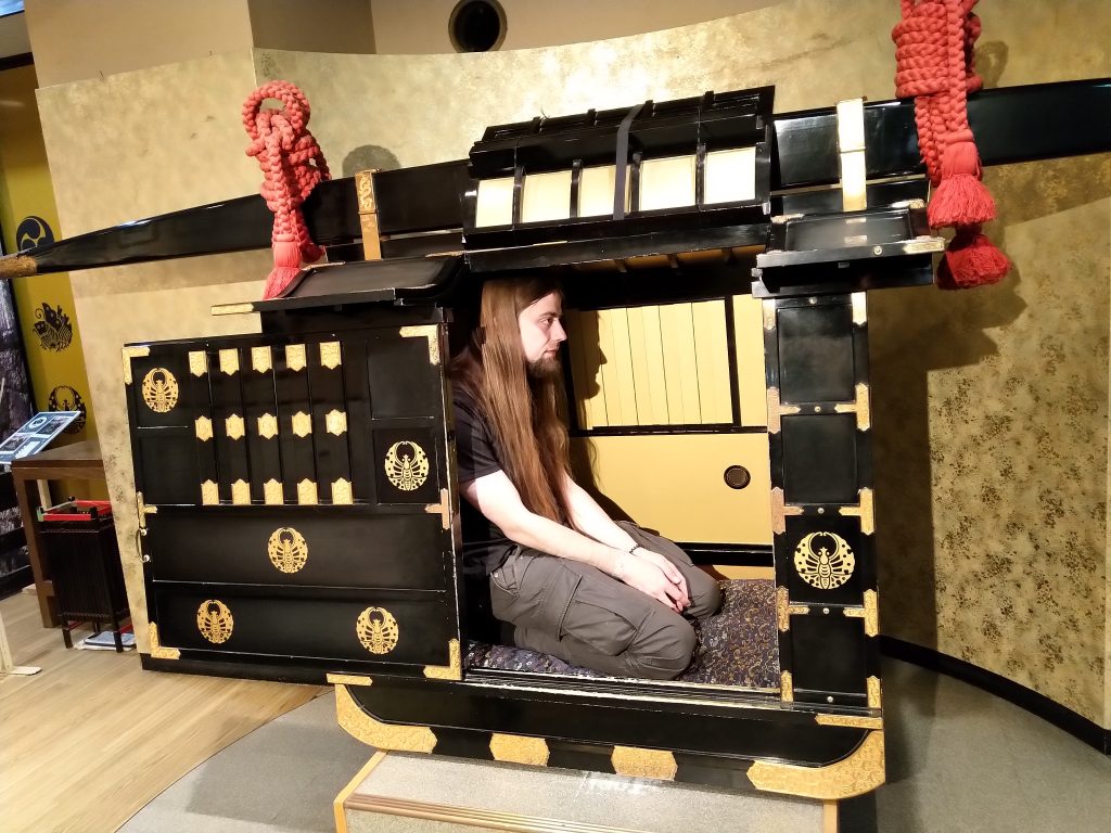Hinter dem Garten war noch ein Museum, das wir besuchten – der Schwerpunkt lag auf dem Handwerk, für das Okayama bekannt sein soll – Töpferei und Waffenschmiede; es war ganz nett, für meinen Geschmackvoll aber zu wenig über die Schwerter und zu viel über Töpferei, da die ganzen Behältnisse auf Dauer etwas repitiv wirkten.