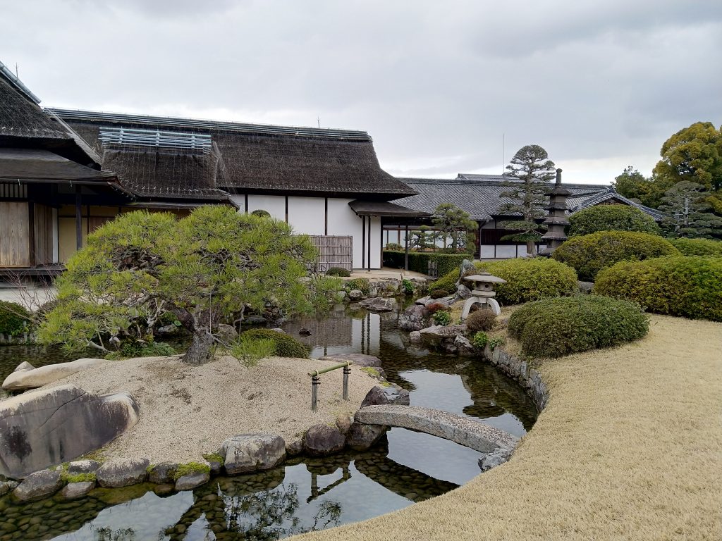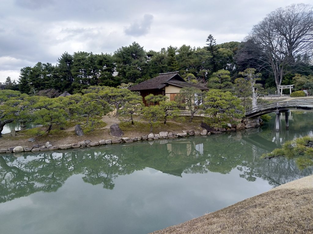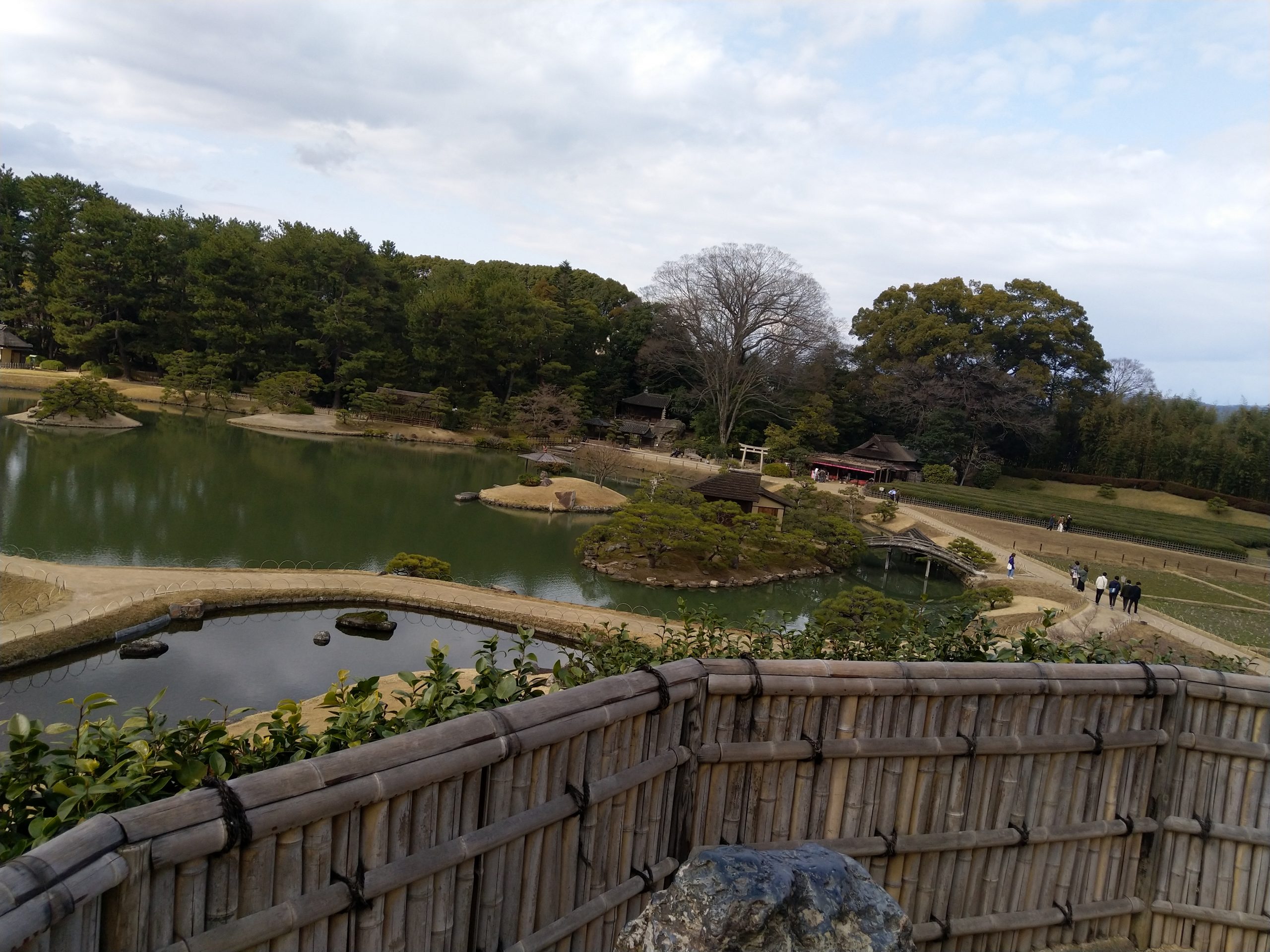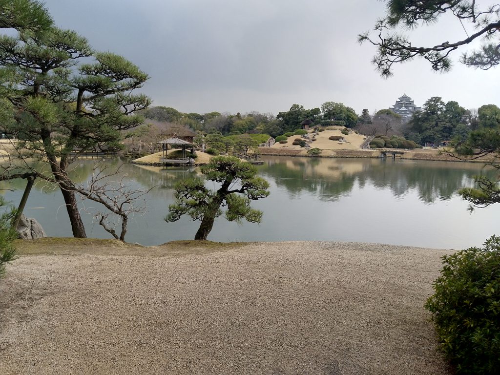 Das mag aber auch an dem liebevollen kleinen Betrieb liegen, der sich echt Mühe mit dem Essen gibt. War auf jeden Fall eine gute Entscheidung. Einige Zeit später hörte auch der Regen auf und wir haben uns den Garten von Okayama angeschaut, der angeblich einer der drei schönsten Gärten Japans sein soll. Das glaube ich sofort, denn er war schon irgendwie beeindruckend, nur waren wir wohl zur falschen Zeit da, weil er stellenweise sehr trist aussah. Er hatte auch einen riesigen Bereich mit Kirschblütenbäumen, die aber leider erst in 1-2 Wochen blühen.