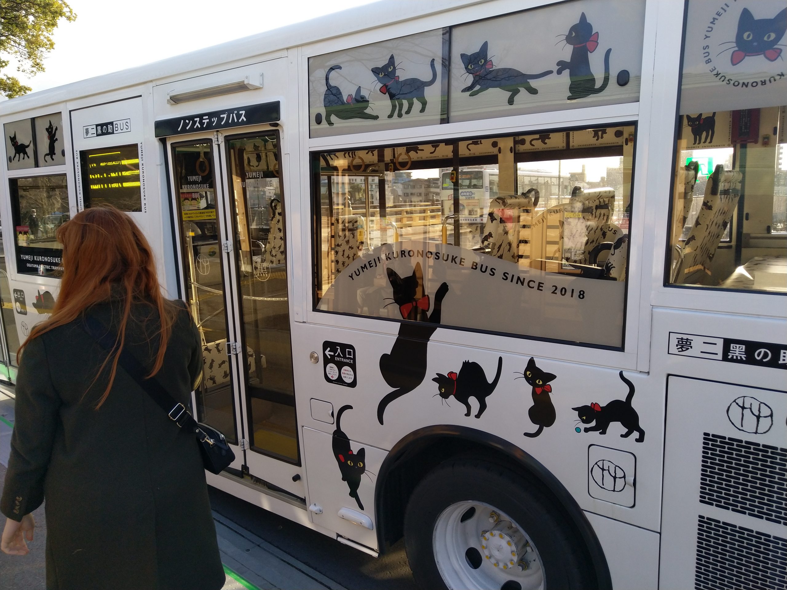 Zurück sind wir mit dem Katzenbus gefahren, auch eine Eigenheit Okayamas, der ca. jeden dritten normalen Bus ersetzt. Eines von Miras Highlights des Tages.