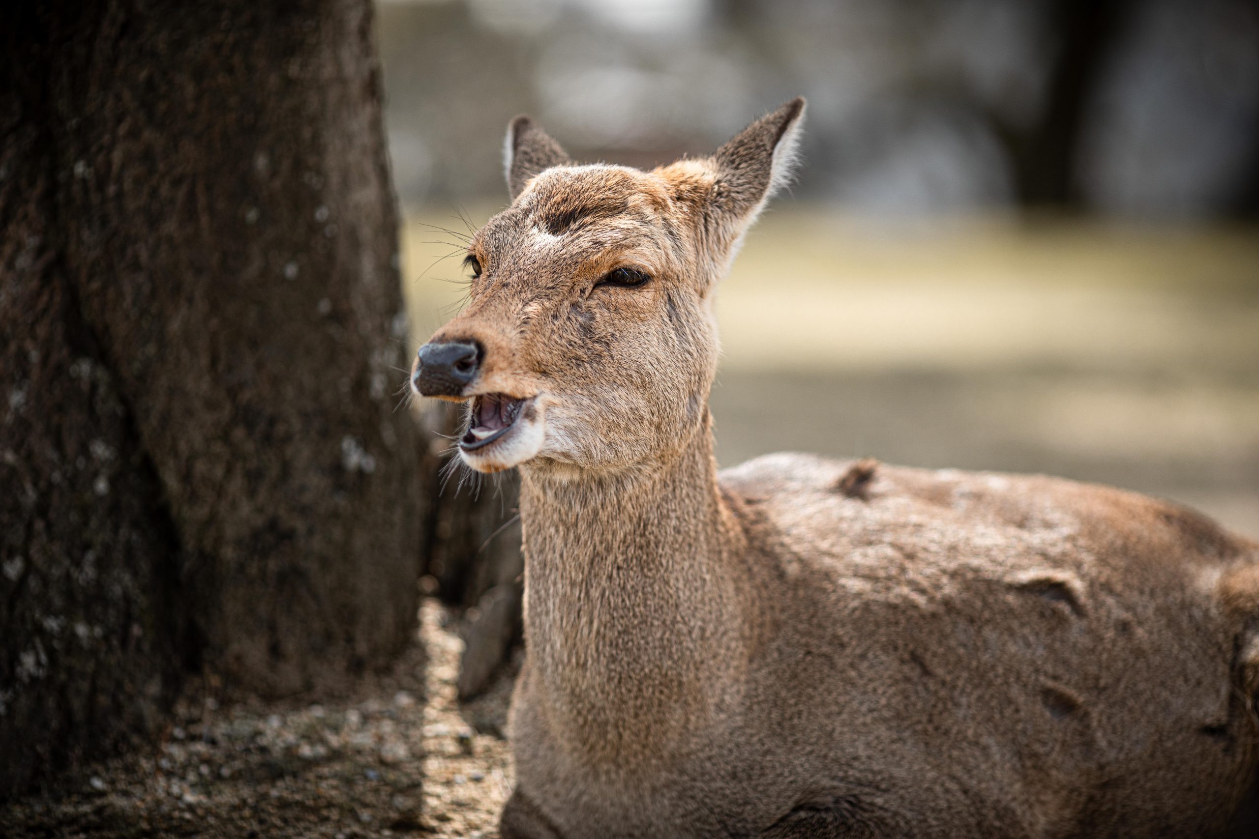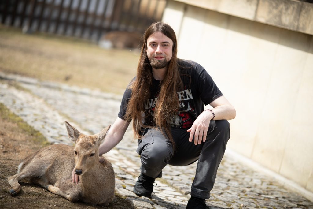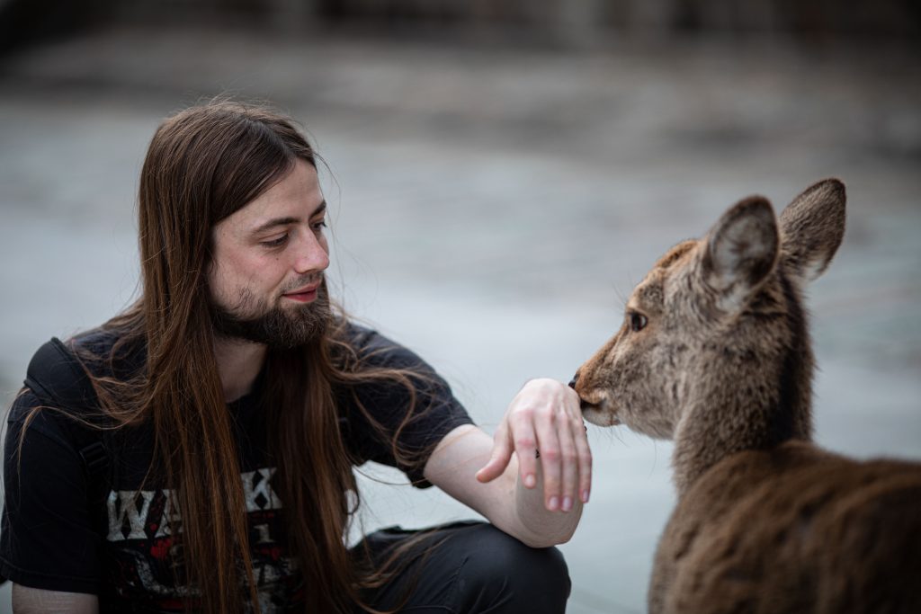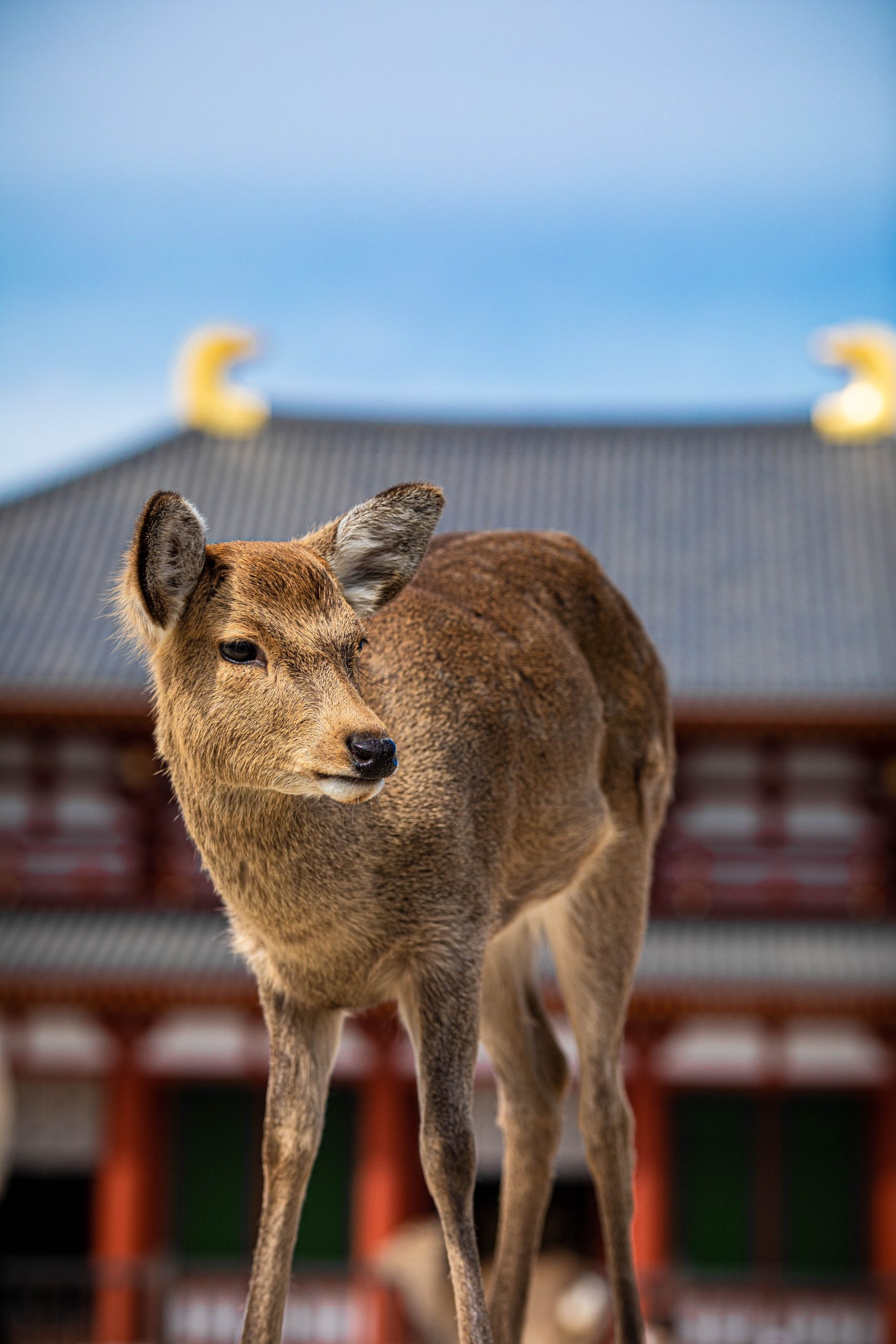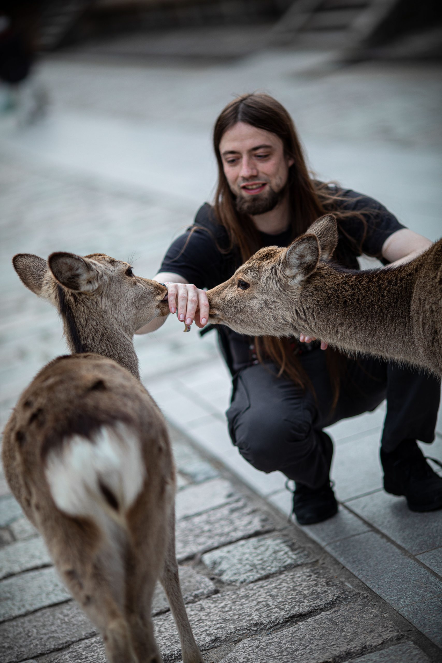 In den meisten Teilen der Stadt laufen Rehe frei rum. Nicht nur das, sie sind zahm und scheuen auch keine Menschen. Ganz im Gegenteil, sie erwarten, dass man sie füttert. Deswegen verlieren sie auch leider schnell das Interesse, wenn man ihnen kein Futter gibt (welches man natürlich bei den dort verstreuten Händlern und Automaten kaufen sollte, da mitgebrachtes Futter eventuell nicht gesund für die Tiere ist). Wenn man sich verbeugt, verbeugen manche sich sogar auch (Eine übliche Geste in Japan)! Wenn sie allerdings Leute mit Futter entdecken, dann werden sie fast schon zu aufdringlich. So haben ein paar Rehe Mira fast umgestoßen, als sie sie füttern wollten. Die Rehe sind aber natürlich nicht das einzige, was Nara zu bieten hat. An den Rehen vorbei haben wir uns auf dem Weg zu einem wunderschönen Garten, dem Yoshikien, gemacht, der uns beiden sehr gut gefallen hat.