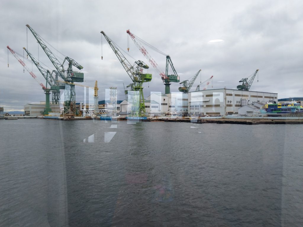 Zudem haben wir festgestellt, dass das berühmte und teure Kobefleisch in manchen Läden um aufgrund des Corona Virus um einige Prozente reduziert war – leider war es immernoch viel zu teuer. Danach haben wir eine kleine Rundreise mit einem Schiff durch den Hafen gemacht, bei der man einiges der Industrie von Kobe schön betrachten konnte.
