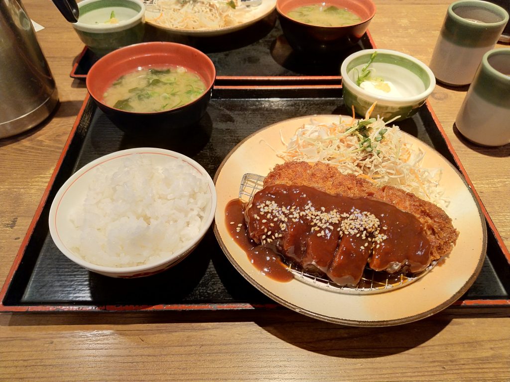 Dann wurde es auch schon dunkel und wir sind wieder zurück nach Osaka gefahren. Dort haben wir noch einen Spaziergang an einen nahegelegenen Fluss gemacht, der inmitten der Großstadt nicht so hübsch wirkte, wie er hätte sein können; und sind noch lecker Abendessen gegangen: Es gab Tonkatsu für unschlagbare 6,50€. So ging auch der dritte Tag ziemlich schnell vorrüber.