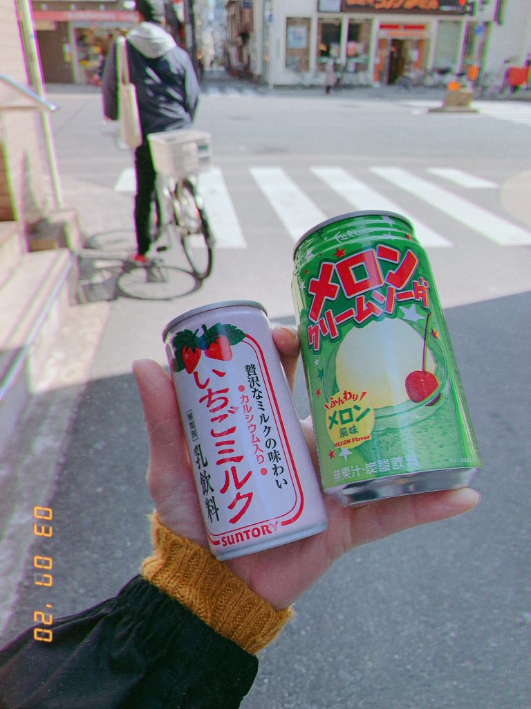 Am Samstag haben wir uns zuerst an den berühmten japanischen Getränkeautomaten lustige Getränke gekauft.